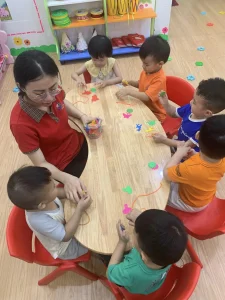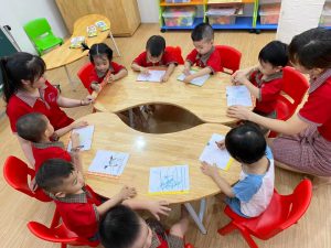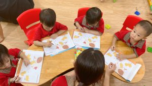 Các bé yêu đang vẽ thức ăn cho gà con. ?❤️?❤️?❤️