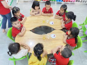Giờ hoạt động làm thí nghiệm đèn dung nham của các con.