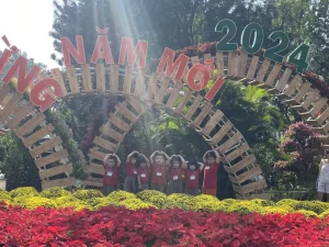 Các con tham quan hoa trái mùa xuân tại công viên Gia Định.