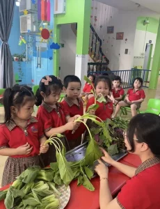 Giờ học tìm hiểu MTXQ nhận biết và phân biệt các loại rau của các...