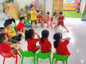 Giờ hoạt động làm quen chữ cái C – E của các con lớp Lá.