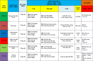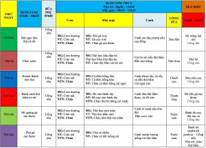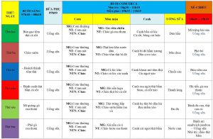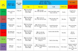 Thực đơn ăn trong tuần 1 : Tháng 9/2025