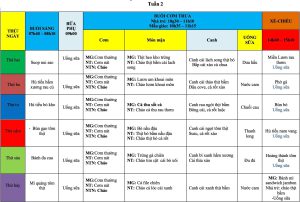Thực đơn ăn trong tuần 2 : Tháng 9/2025