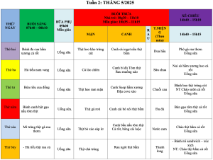 Thực đơn ăn trong tuần 2 : Tháng 5/2025