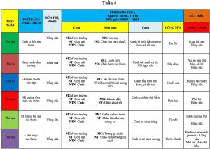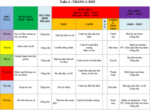 Thực đơn ăn trong tuần 4 : Tháng 5/2025