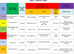 Thực đơn ăn trong tuần 5 : Tháng 5/2025