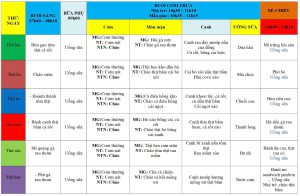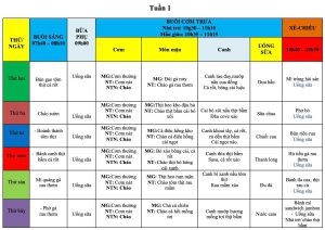 Thực đơn ăn trong tuần 1 : Tháng 7/2025